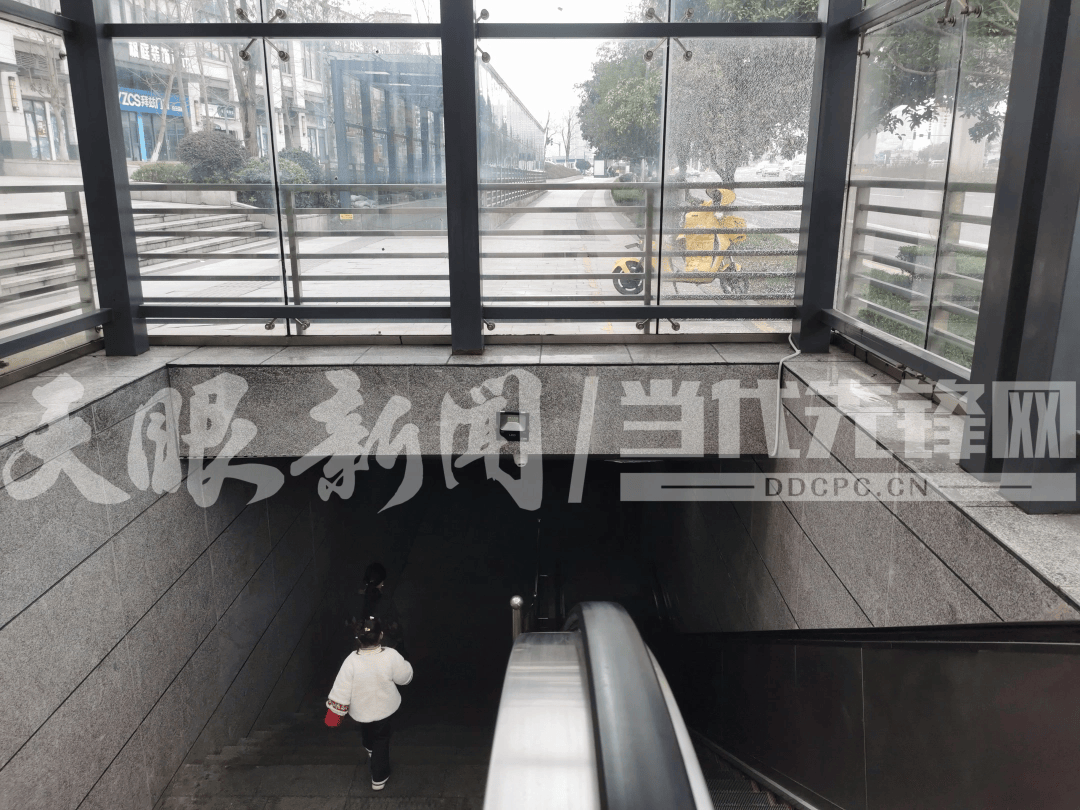 根据市民提供的线索,记者实地探访了这一地下通道。该通道位于社区主要出入口,连接着住宅区与周边商业、公交站点,日常通行人流量较大。发生炸裂的玻璃位于通道口上方的采光顶,正对下行扶梯。这类玻璃顶棚是现代地下通道的常见设计,其核心作用在于自然采光。然而现场可见,这块本该明亮安全的玻璃,裂纹已贯穿玻璃整体,在午后光线照射下,裂痕交织,显得格外刺眼。原本承担着安全与美观功能的构件,如今却成了安全隐患。